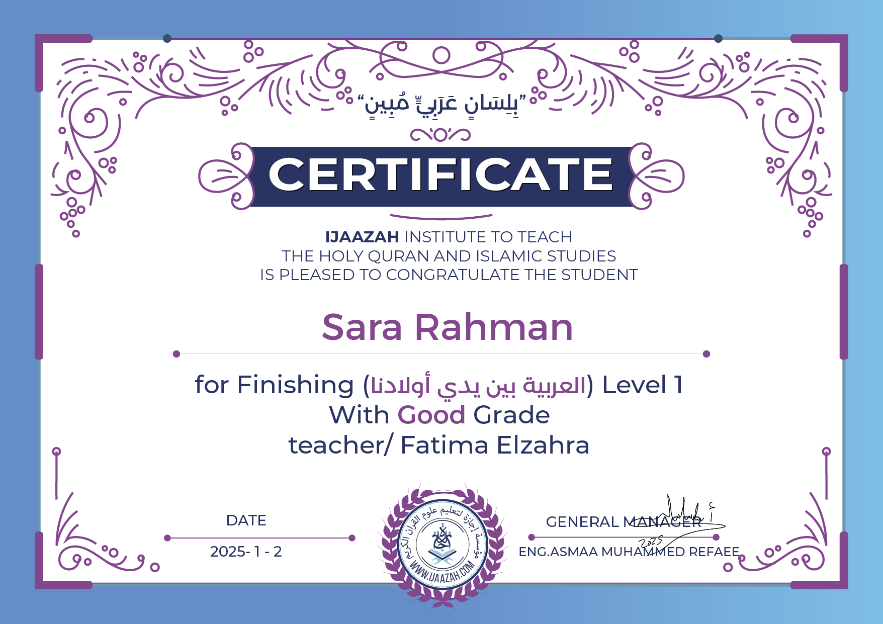 Sara Rahman for Finishing (العربية بين يدي أولادنا) Level 1