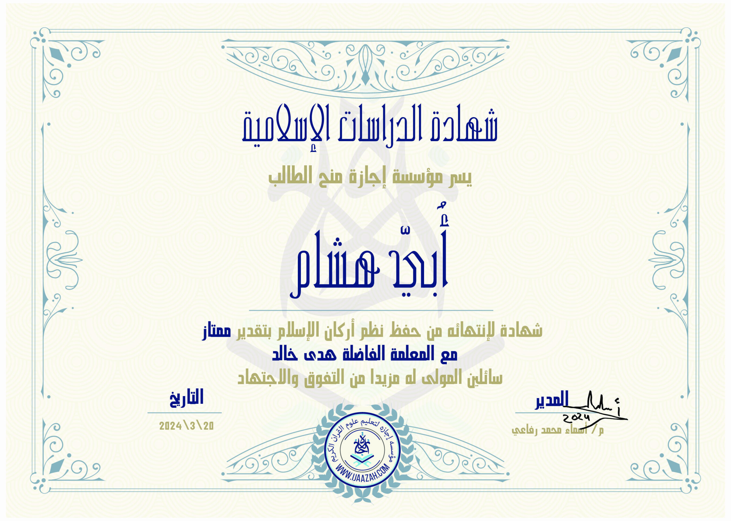 أُبي هشام شهادة حفظ نظم أركان الإسلام