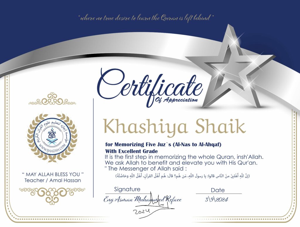 الرئيسيةBoardKhashiya Shaik for Memorizing Five Juz`s (Al-Nas to Al-Ahqaf)Khashiya Shaik for Memorizing Five Juz`s (Al-Nas to Al-Ahqaf) اترك تعليقاً / بواسطة Ijazah Quran / April 15, 2024